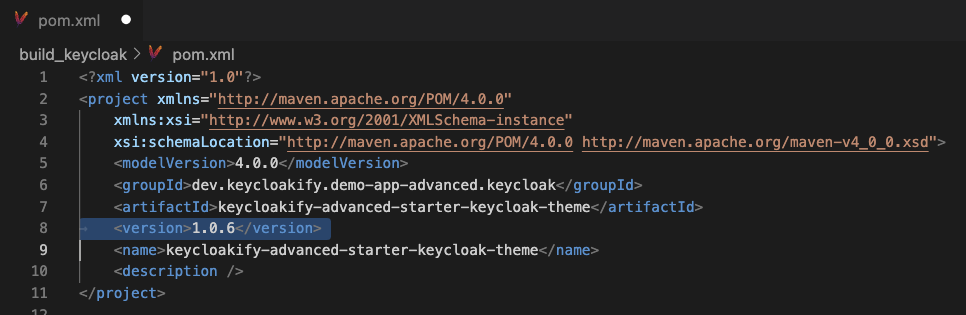 Configure the version that will appear in the `pom.xml` file within the jar file of your theme.