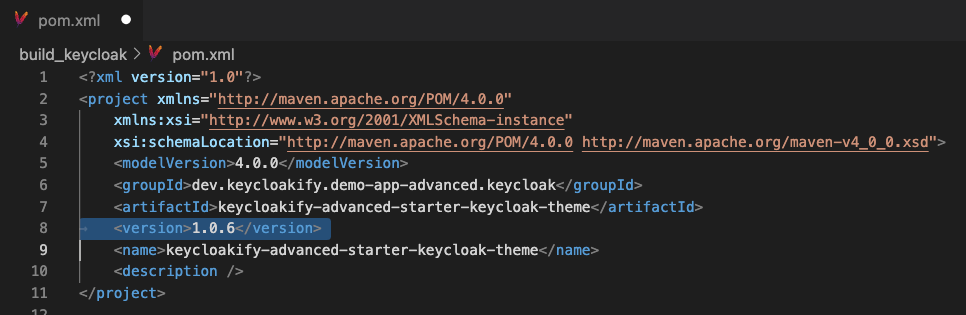 Configure the version that will appear in the pom.xml file within the jar file of your theme.