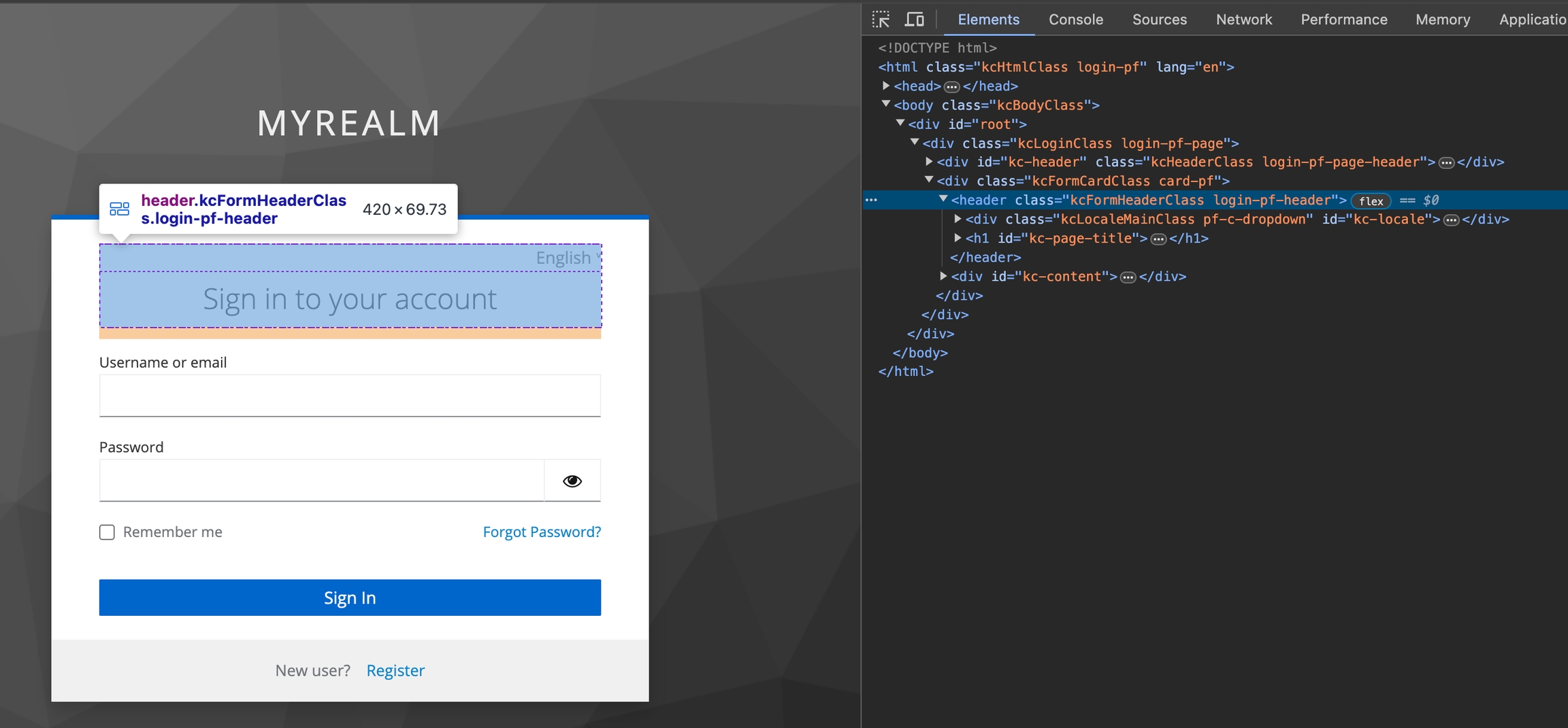 As you can see in the screenshot below most DOM Element get assigned a class starting by kcSomething. Example kcFormHeaderClass.