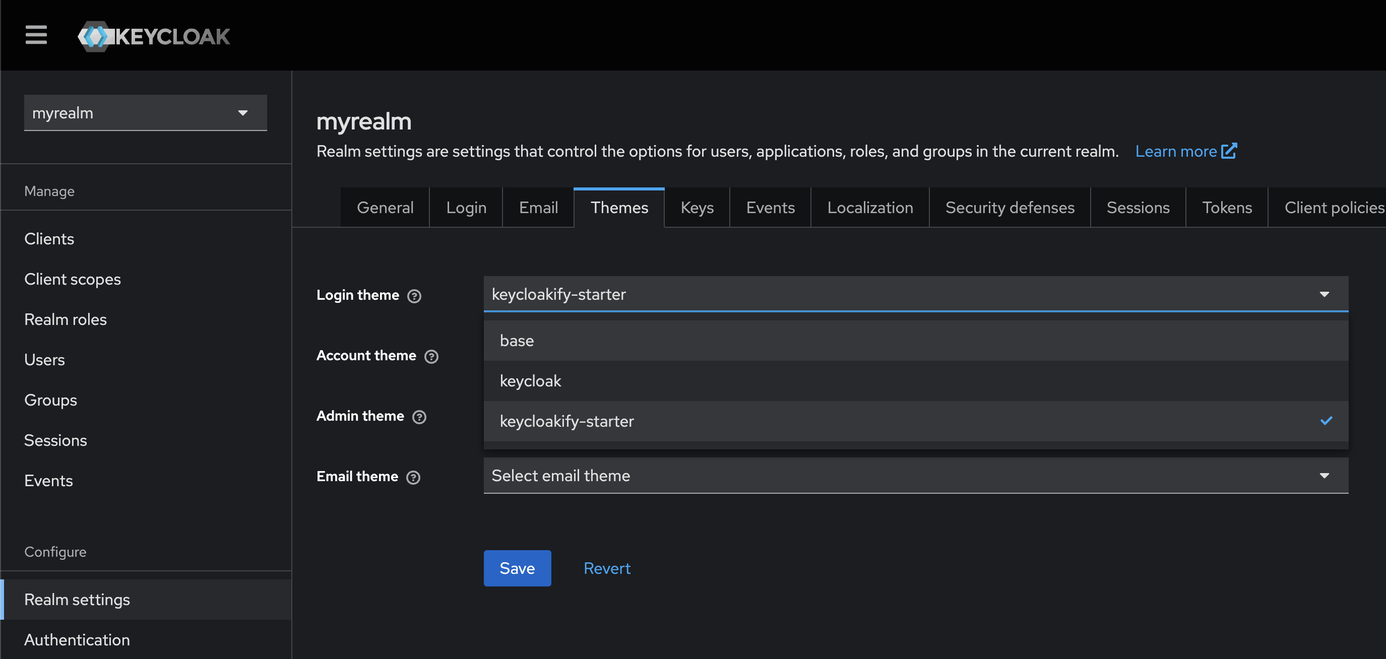 # Enabling your Theme in the Keycloak Admin Console