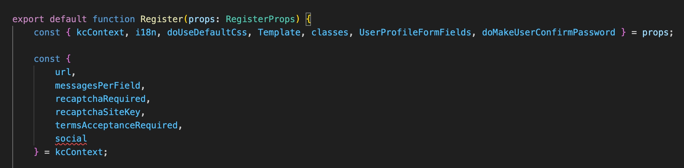 A common scenario is when you want, on the register page to enable sign-up via Google or Facebook but the kcContext.social object isn't defined: