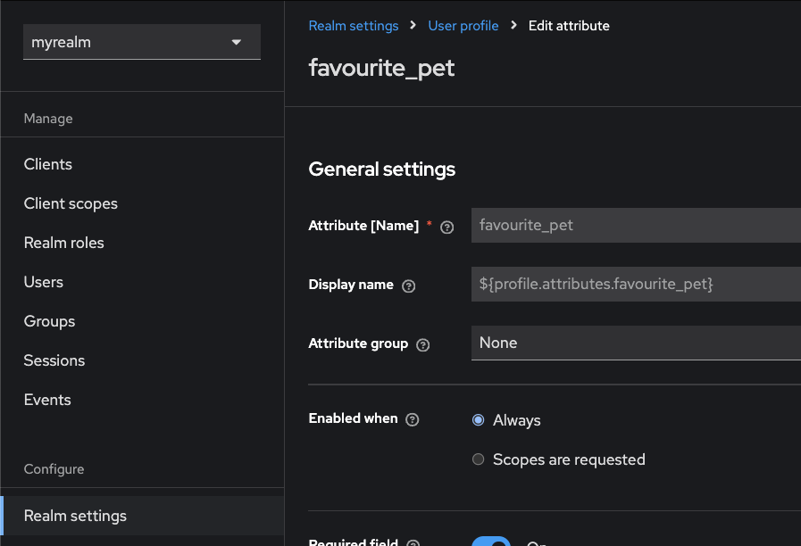 ## In the Keycloak Realm configuration