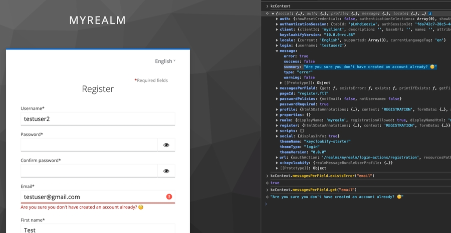 This is because Keycloakify will analyze your code at build time to make Keycloak aware of your modifications of the base messages so that server side generated feedback messages can use your translations.
