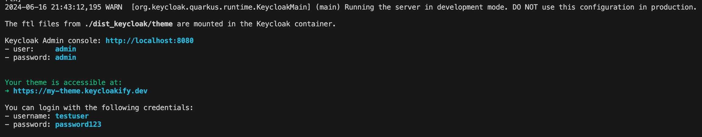 Testing your theme in Storybook is nice, but at some point you'll want to test your theme in a real Keycloak before shipping it in production!