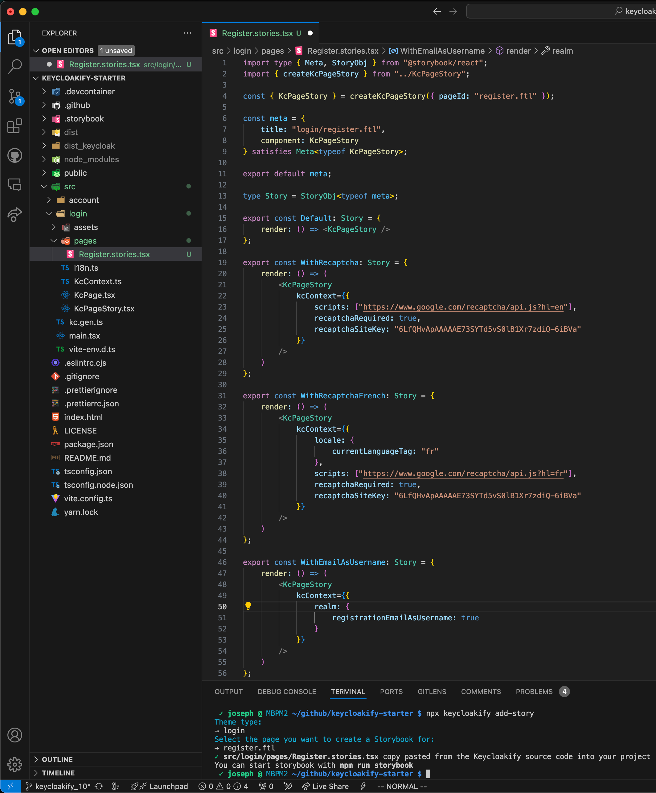 npx keycloakify add-story