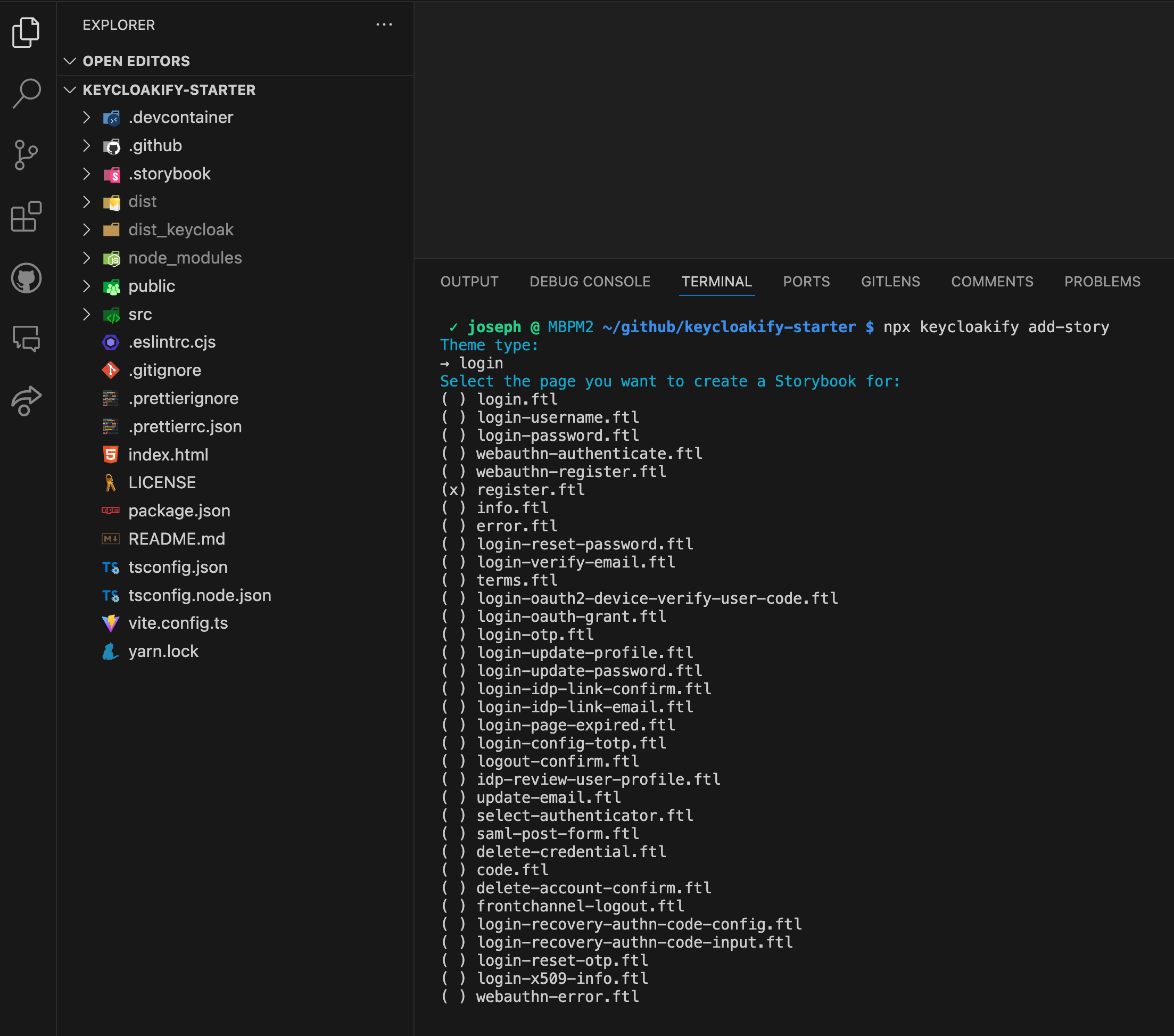 So, just run this command in the root of your Keycloakify project and select the pages you want.